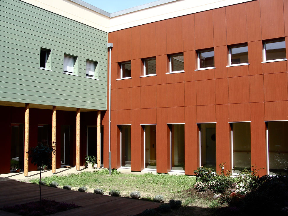 Cette maison de retraite construite pour la communauté des Soeurs de Saint François d'Assise, respecte "l'esprit de Saint-François": ossature bois, isolation en ouate de cellulose, toiture végétalisée, chauffage par aérothermie, production d'eau chaude sanitaire par panneaux solaires.